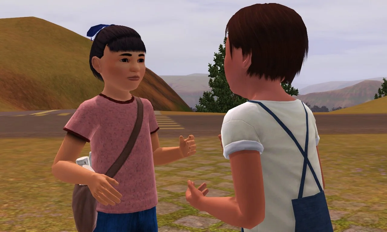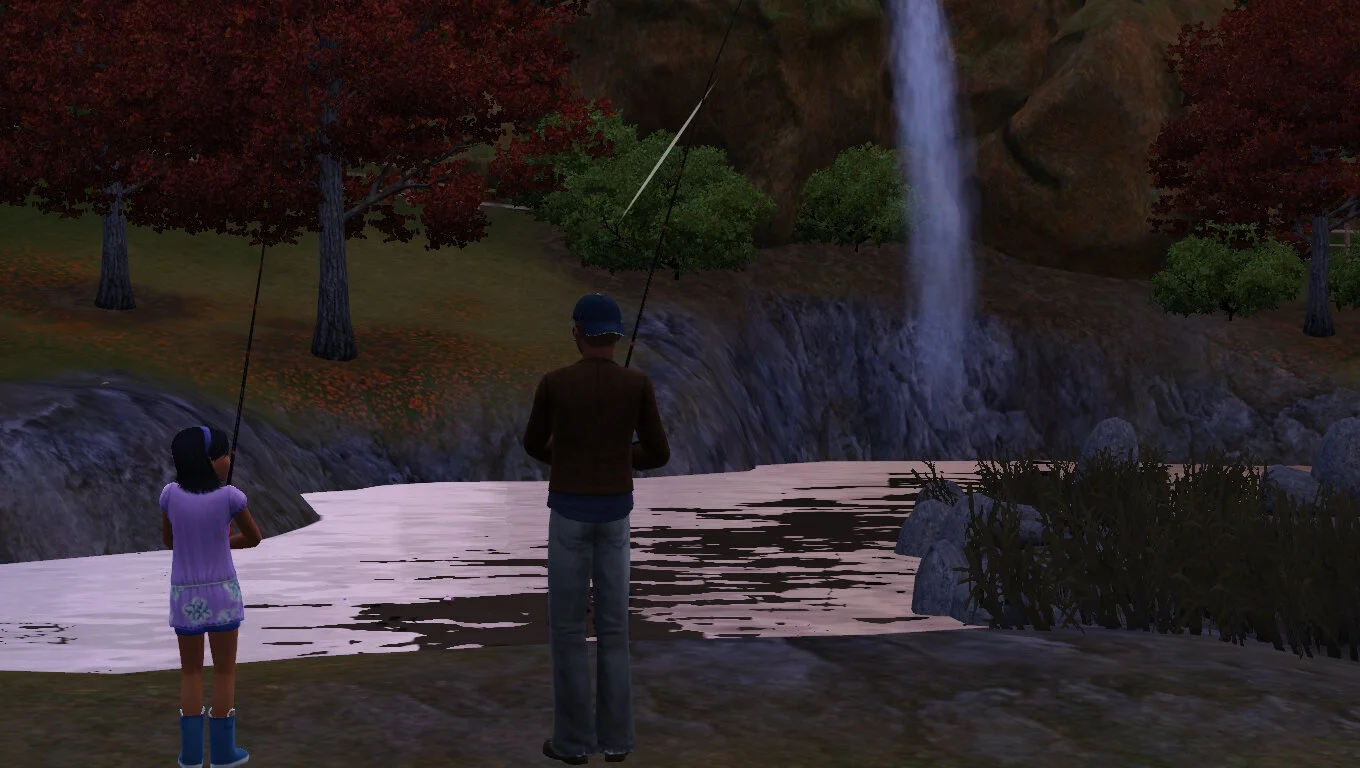 Emery’s 13th birthday arrived on a beautiful spring day. The winter cold had thawed and seemed like a distant memory now that the warm summer air was starting to move in. Emery’s cell phone alarm quietly chimed before the sun rose, but it woke her as planned. After she brushed her hair and pulled on a tank top and shorts, she pushed around the fabric in her top drawer, looking for a specific wide headband she’d made. She wasn’t very good at sewing, but she’d made a few fabric headbands by following SimTube tutorials. The purple one with a funky pattern was her favorite. Her mission a success, she pulled it on and adjusted it to comfortably keep her long hair out of her face. She pushed the drawer closed and opened the next. She took out one of the button-up blouses and wide belts to complete her outfit. She knew it would just be another day, but she wanted to feel pretty and still be comfortable enough to go fishing without feeling ridiculous. Emery was out the door and riding her bike up to the Falls in no time.
